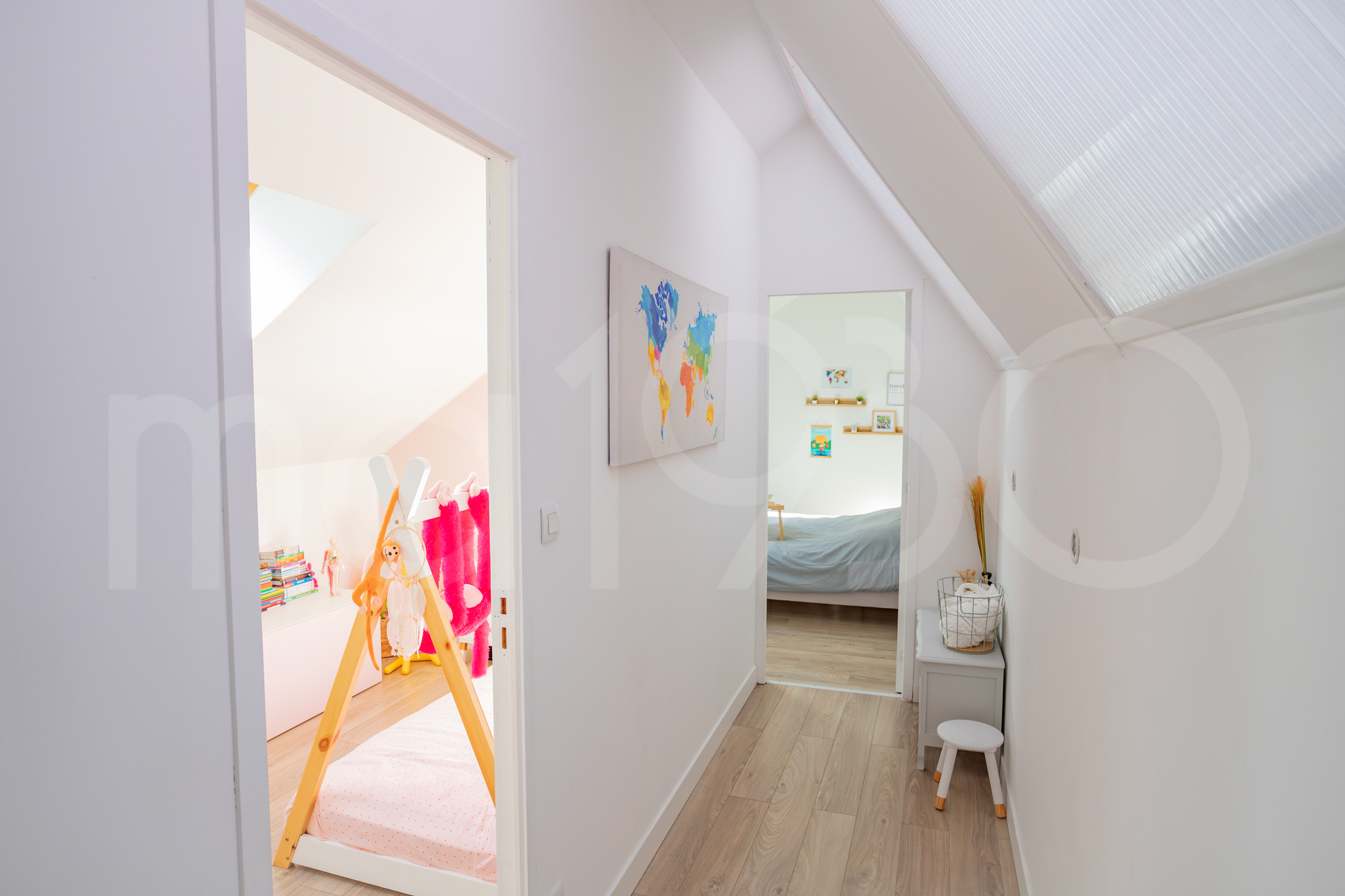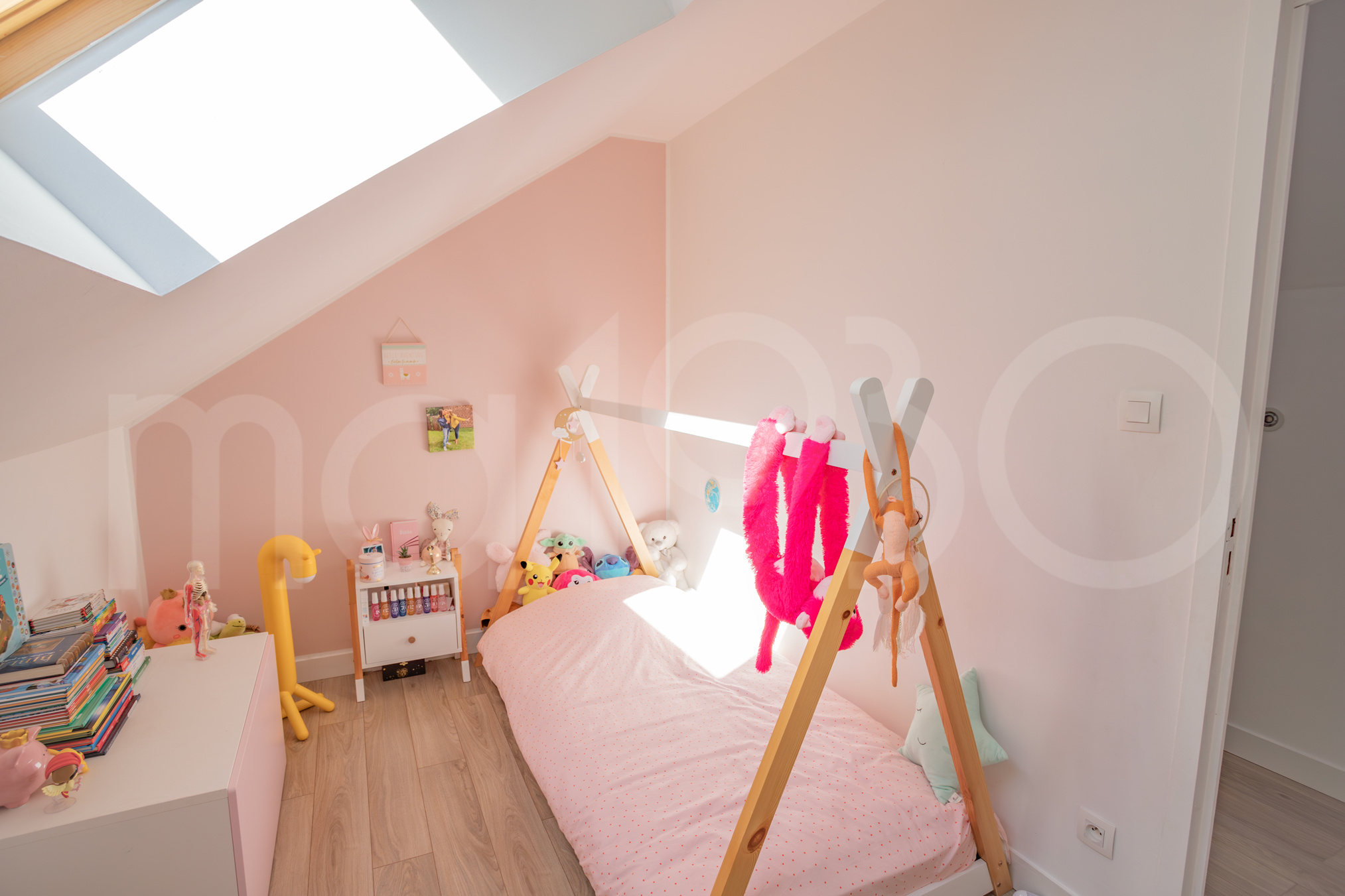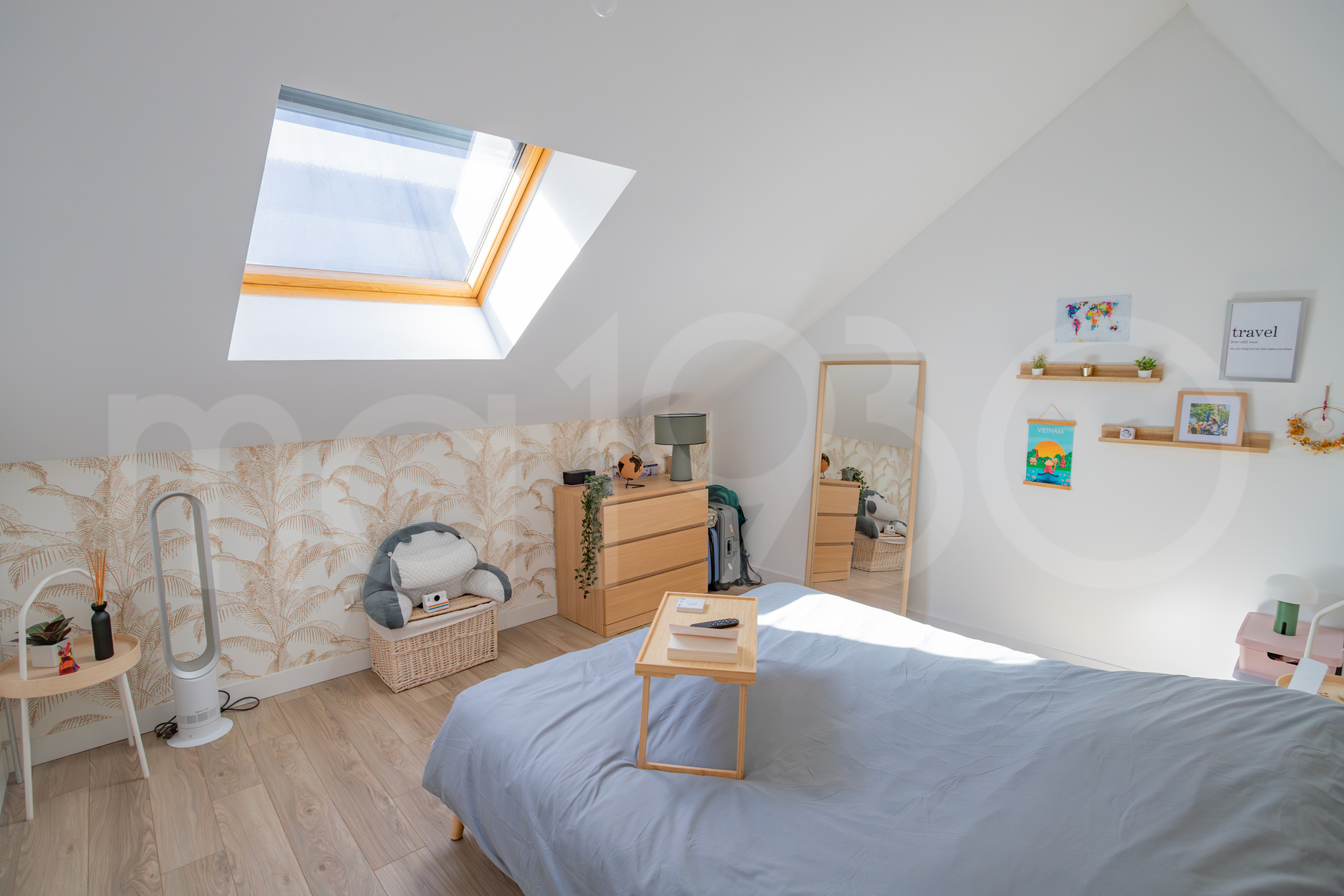 La première, idéale pour un enfant ou un bureau, dispose d’un joli parquet, d’un radiateur électrique mais surtout d’un grand Velux équipé d’un volet roulant motorisé. Si vous connaissez les lofts, vous devez savoir que beaucoup disposent de chambres aveugles, ou alors avec « vide sur séjour ». La ventilation notamment l’été est souvent impossible. Ici vous n’aurez jamais ce problème!