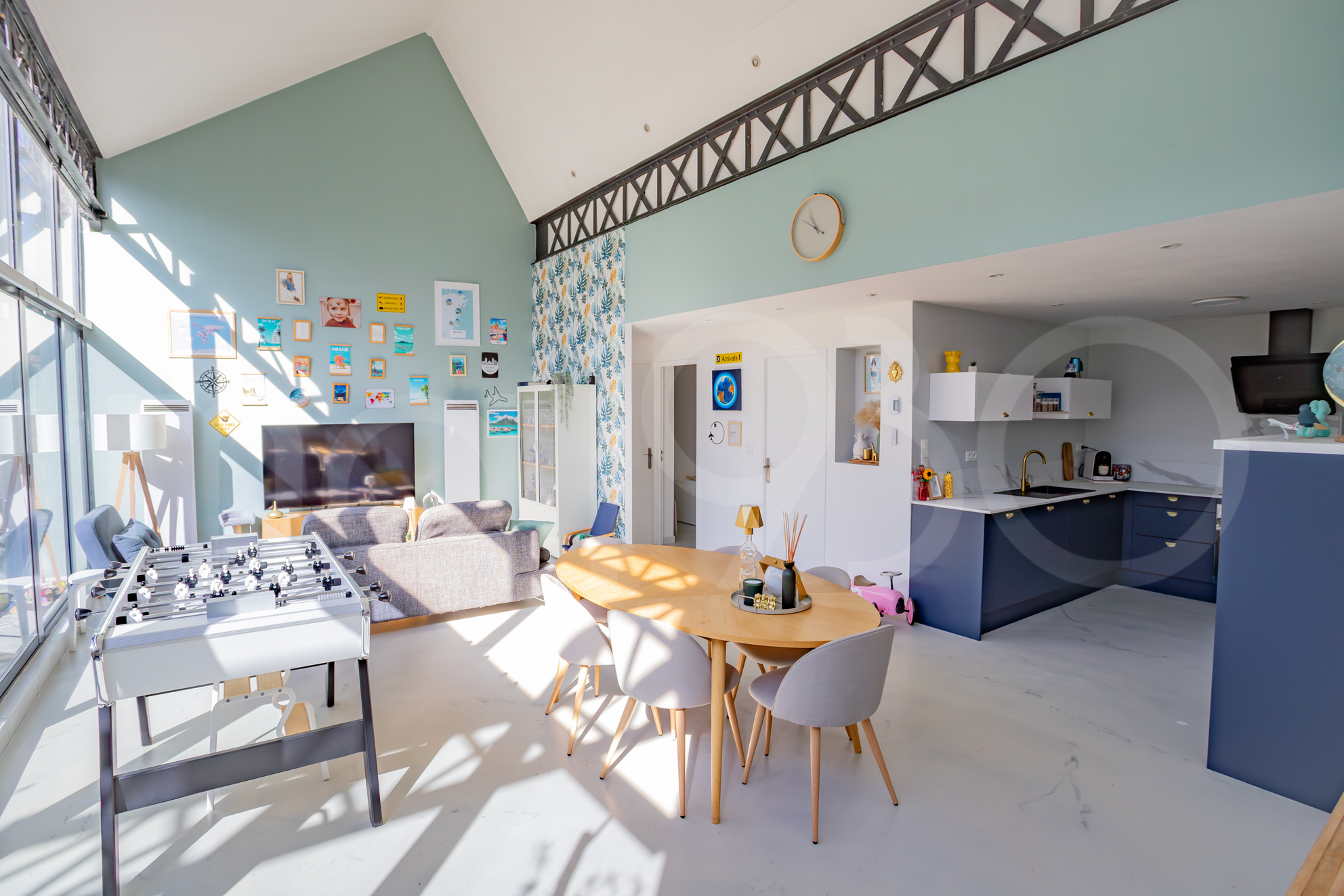Et nous avons beaucoup de plaisir à vous proposer ce loft de 90m2 habitables (81 loi Carrez) dont l’entrée se trouve dans le haut de la rue de Guisnes, à moins de 300m de l’entrée du Jardin Botanique et tous les services et commerces que propose le centre-ville de Tourcoing.