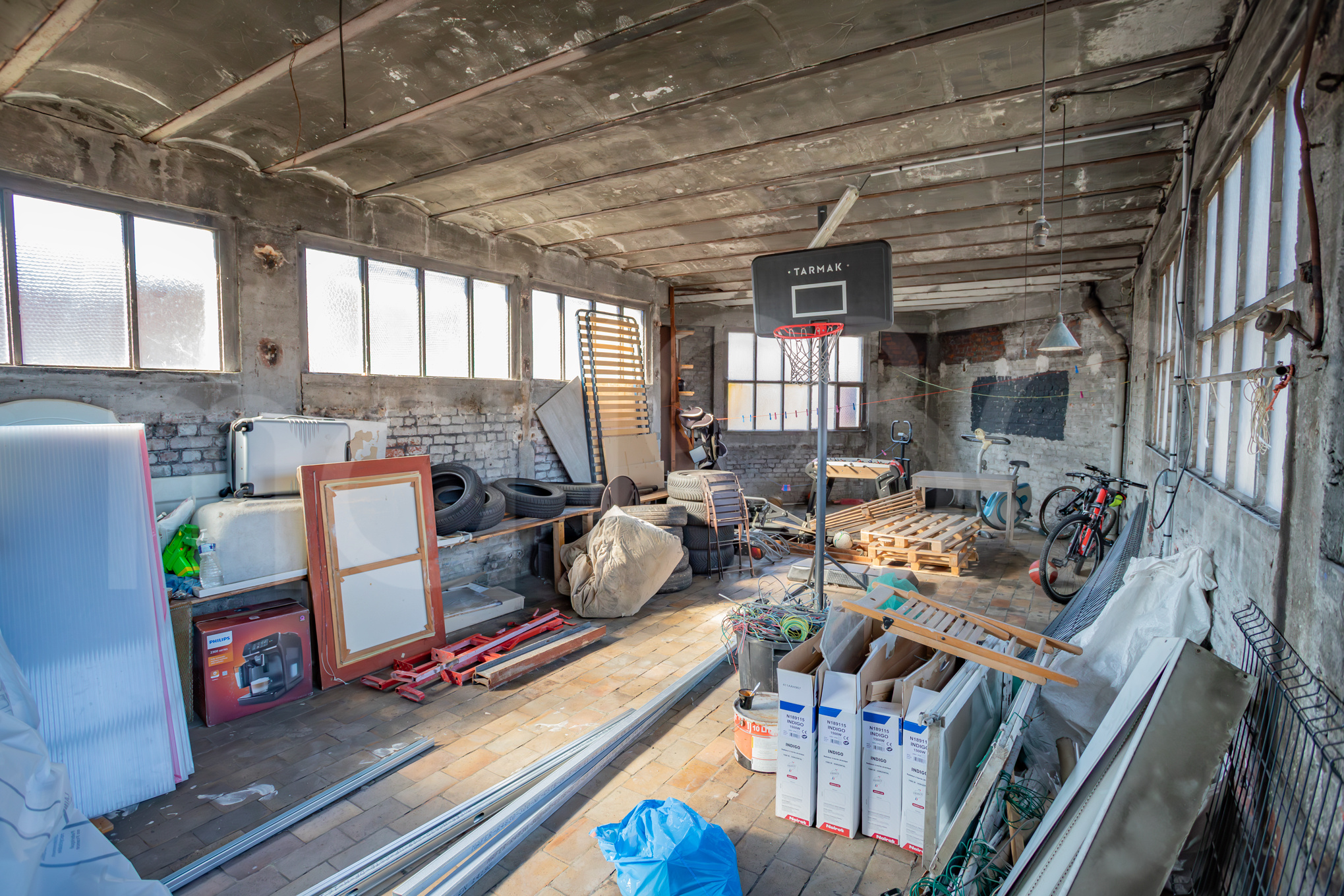 – À l’étage un atelier de 50m2 où quasi tout est possible (logement, bureaux, salle de sport, de jeux…)